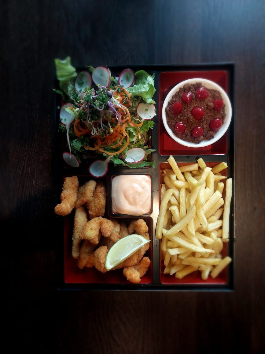 Fischstäbchen, Pommes Frites und 1 Kugel Eis 10 Euro